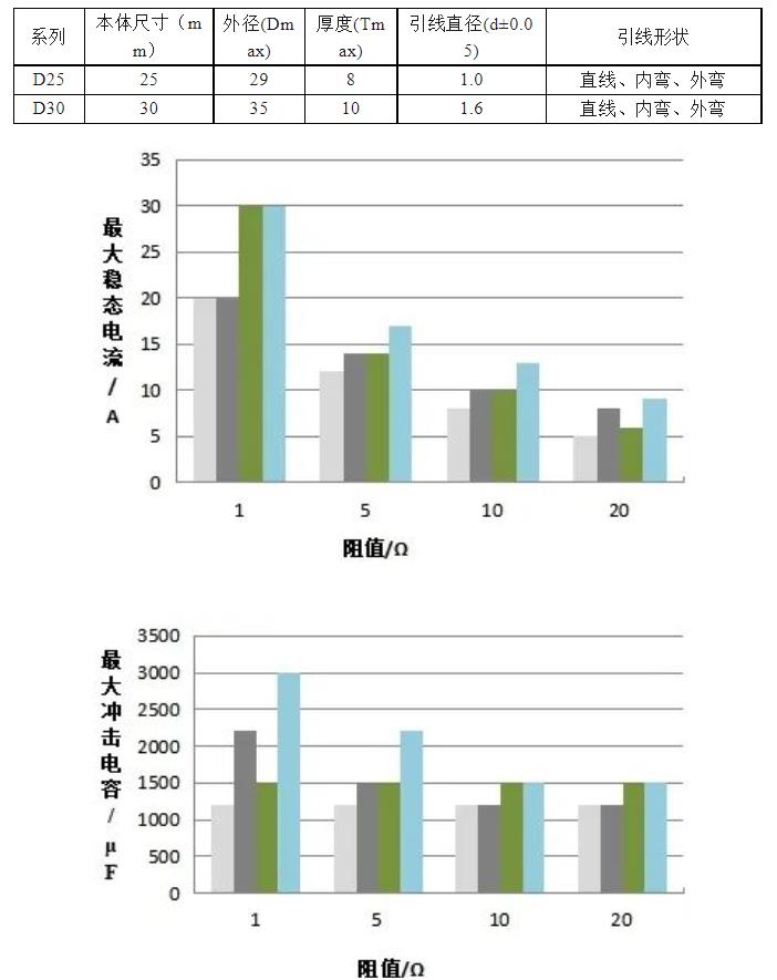 風華高科推出新品高功率D25/D30NTC熱敏電阻系列產品,大幅提升了產品穩態電流能力,具有殘余電阻小,自身功耗低等優點,更適用于大功率開關電源、充電樁等各種高功率設備。該系列產品能在電路接通瞬間抑制浪涌電流的沖擊,有效解決大電流帶來的器件加速劣化問題。目前主要量產型號為1D-25、5D-25、20D-25、1D-30、5D-30以及20D-30