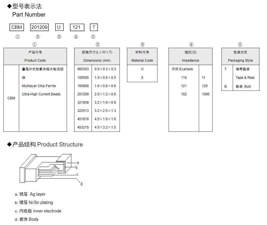 風(fēng)華高科疊層片式鐵氧體超大電流磁珠(CBM) 命名規(guī)則: