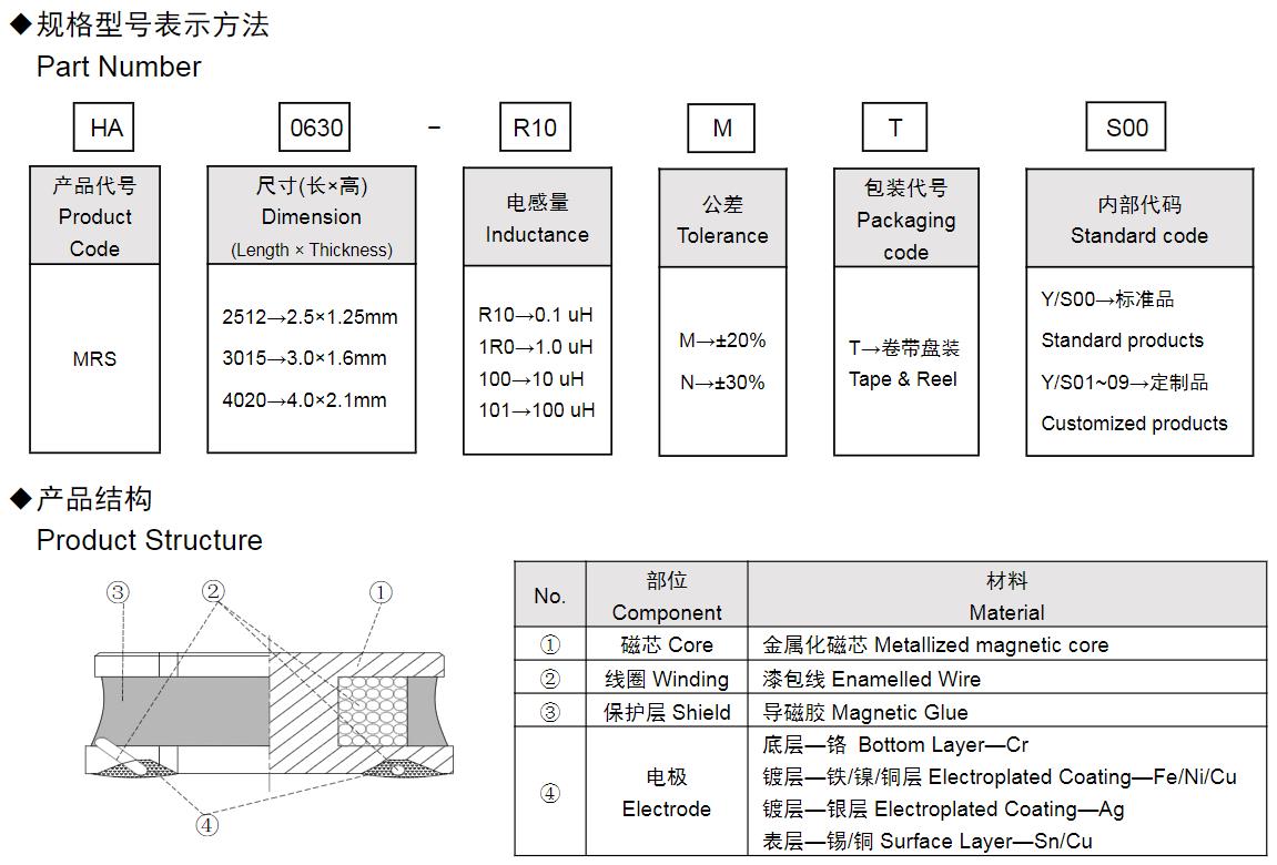 風華高科MRS系列功率電感器命名規則: