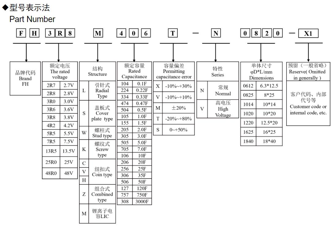 風華高科鋰離子超級電容器型號命名規則: