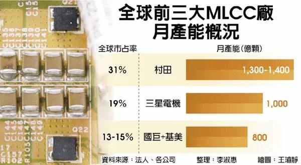 初估大發(fā)新廠滿載稼動之下,兼并估計基美的MLCC產能,新國巨MLCC月產能可望站穩(wěn)1,000億顆,僅越日商村田(Murata)、韓商三星電機(SEMCO),穩(wěn)居寰球第三大廠。