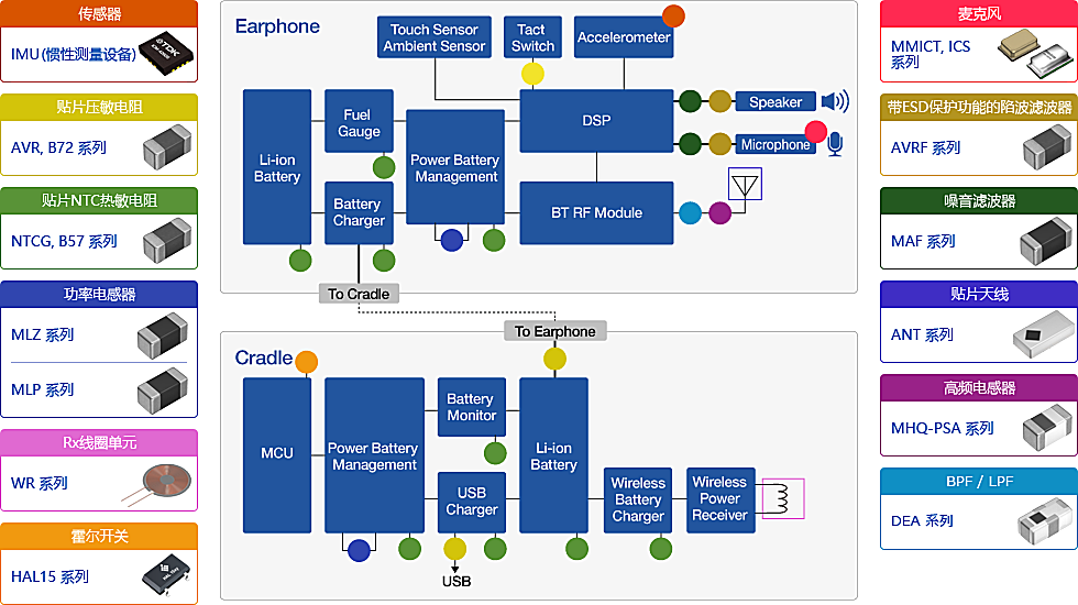 近年來,TWS(真無線立體聲)技術被廣泛應用在藍牙耳機領域中,TDK也擁有可應用在TWS中的豐富產品線,例如MEMS麥克風、陷波濾波器、噪音濾波器、高頻電感器、傳感器、霍爾開關等。本期推文將為各位介紹應用在TWS中的TDK部分產品系列。