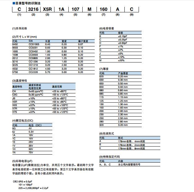 TDK貼片電容命名規則